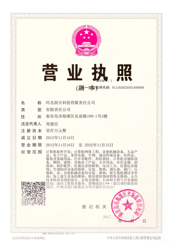 河北潤(rùn)天科技有限責(zé)任公司始于2000年成立,公司以工業(yè)、應(yīng)急救援產(chǎn)品貿(mào)易為基礎(chǔ),主營(yíng)安全設(shè)備、安全裝備、儀器儀表的銷售、維修及檢驗(yàn)檢測(cè);公司通過了CMA、CNAS實(shí)驗(yàn)室認(rèn)證及特種設(shè)備檢驗(yàn)檢測(cè)機(jī)構(gòu)核準(zhǔn)以...[更多]